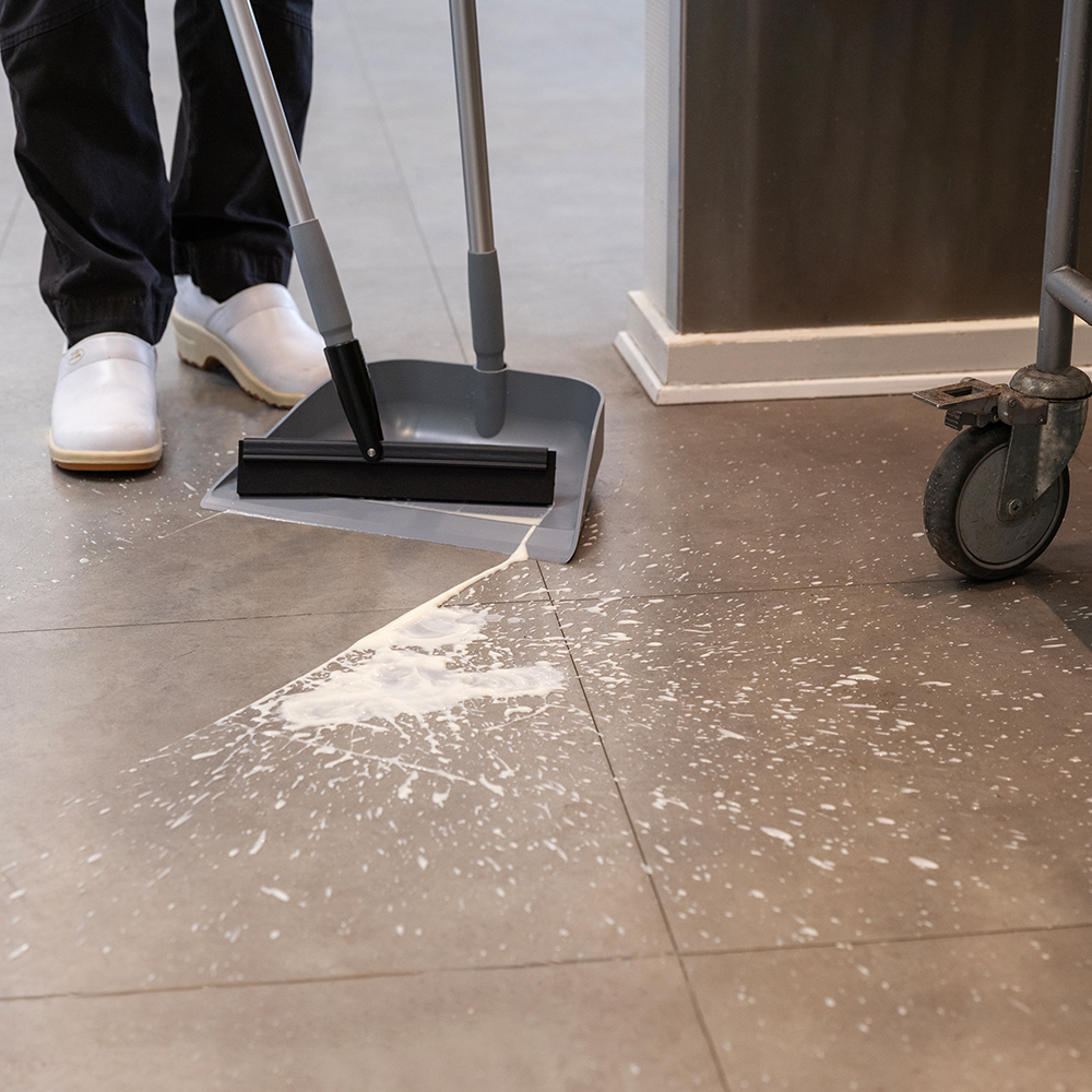 Die Vikan Kehrschaufel ist vollständig lebensmittelecht gemäß EU 1935/2004, FDA-zertifiziert und trägt das Glas-&-Gabel-Symbol. Hitzebeständig bis 100 °C und autoklavierbar bis 121 °C, ideal für den Einsatz in der Lebensmittelproduktion, im Gesundheitswesen und in der Pharmaindustrie.